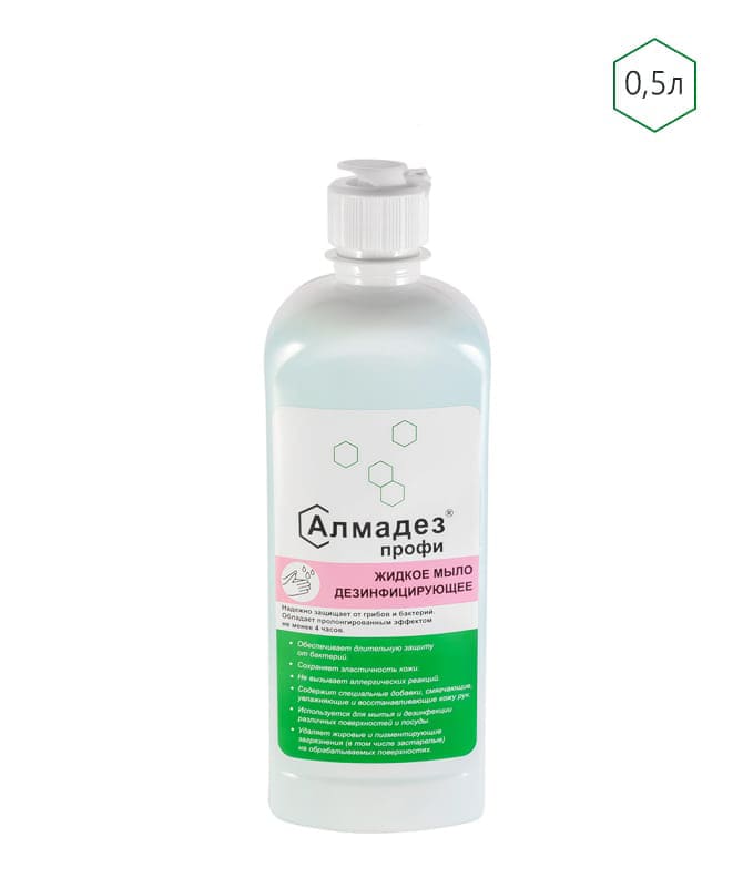 Дезинфицирующее средство (жидкое мыло) Алмадезпрофи представляет собой готовую к применению бесцветную или соответствующую цвету применяемого красителя гелеобразную жидкость со слабым специфическим запахом или с запахом применяемой отдушки.